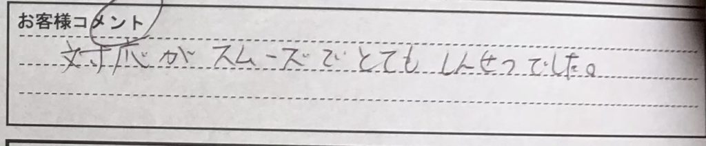 「対応がスムーズでとてもしんせつでした。」