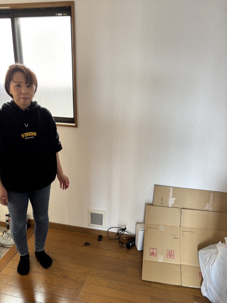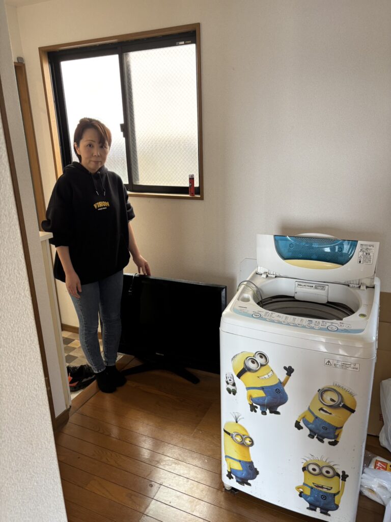 作業前のお部屋には、黒い液晶テレビと白い縦型洗濯機がしっかりと置かれており、まさにお引っ越し前の生活感が残るリアルな現場でございました🙂↕️