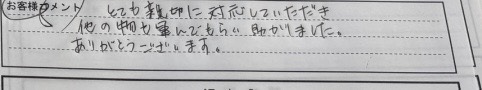 「とても親切に対応していただき 他の物運んでもらい助かりました。ありがとうございます。」