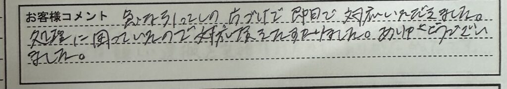「急ぎのお願いでしたが、当日対応していただけました。処理に困っていたので助かりました。ありがとうございました。」